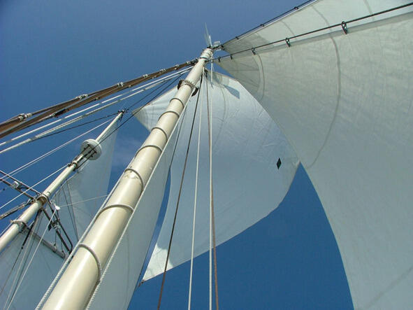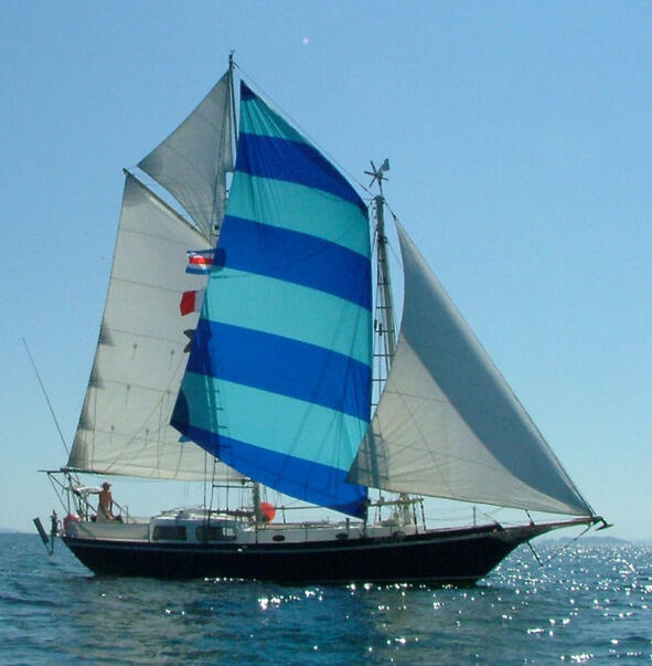 В парусном гардеробе шхуны есть также солидный передний парус, который ставится в определенных условиях взамен кливера со стакселем. В шхунерской традиции это «мул», но современники называют его «генуей».