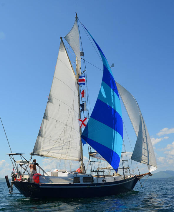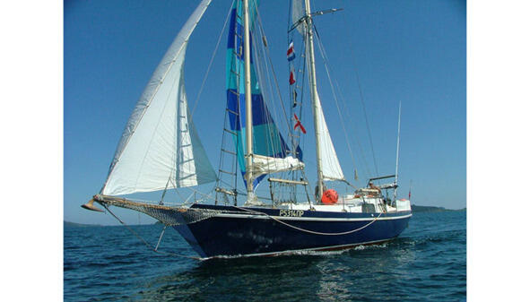 Голливоблер поставлен вместо фока с фишерманом. Впереди вместо кливера со стакселем поставлена генуя (мул).