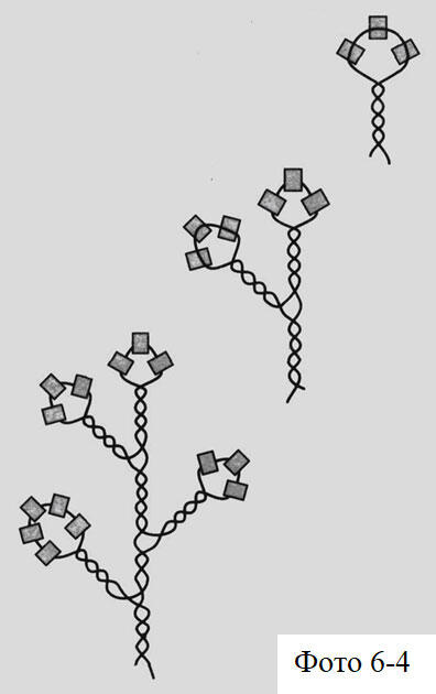 Для плетения округлых лепестков цветов применяют обвивающие петли, то есть одну маленькую петлю обвивают 23 петли большего размера, идущие вплотную к первой петле и последующим.