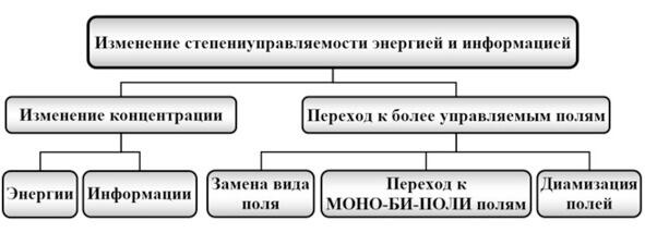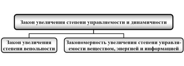 Закон увеличения степени управляемости и динамичности имеет подзакон закон изменения степени вепольности и закономерность изменения управляемости веществом, энергией и информацией (рис. 1.2).