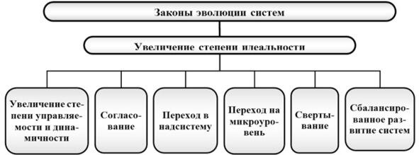 При создании системы стандартов на решение изобретательских задач Г. С. Альтшуллер использовал только некоторые законы из группы эволюции систем. Детально законы развития систем изложены в монографии3.