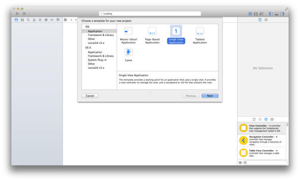 И так, первым шагом мы запустим Xcode, и создадим проект, после этих действий, должно появиться окно, где можно выбрать уже подготовленный для чего-либо проект, например, выберем «Single View Application» (рис. 1.1). С остальными типами познакомимся позже.