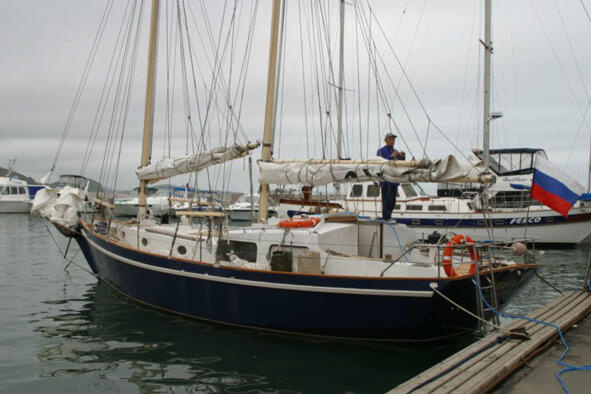 Заменили пару фалов и шкот, поменяли кожу на усах гафелей. Лодка была в целом готова к походу, палубу перед сезоном, как и в прошлом году, из-за плохой погоды, покрасить не удалось. Ветрового авторулевого я также доделать не успел, некоторые сомнения вызывала новая конструкция судовой машины. Зато борт в этом году покрыли благородным полиуретаном.