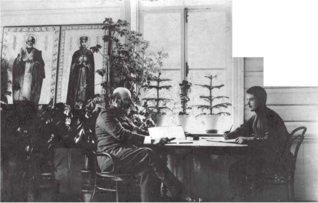Н. Н. Неплюев со своей семьей матерью А. Н. Неплюевой и сёстрами О. Н. Неплюевой и М. Н. Уманец