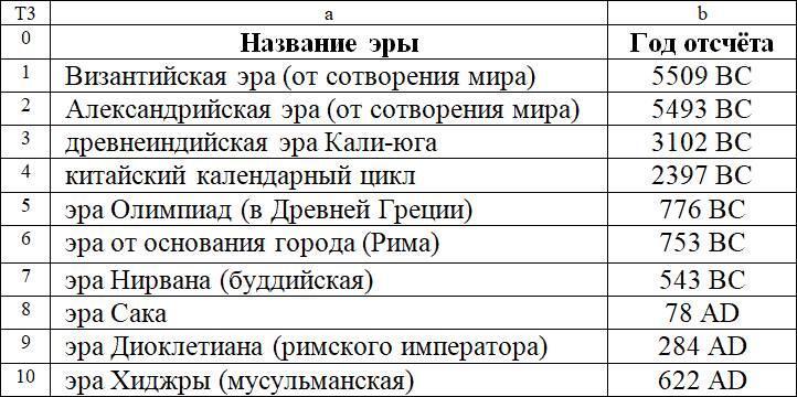 1.16. Сегодня применение христианской эры кажется привычным, хотя раньше использовалось множество летоисчислений, имевших несовпадающую нумерацию календарных лет и веков, например, разница между византийской и мусульманской эрой составляла более 6000 лет.