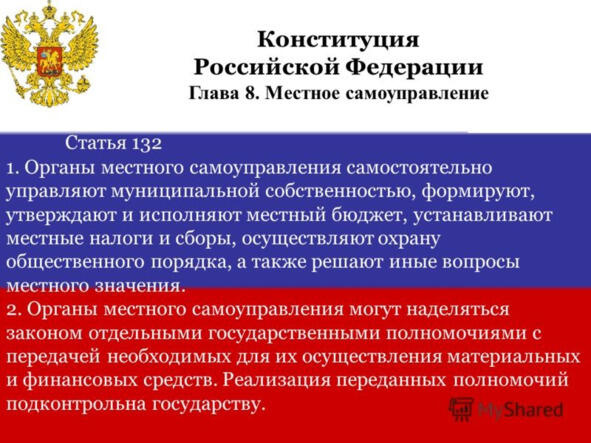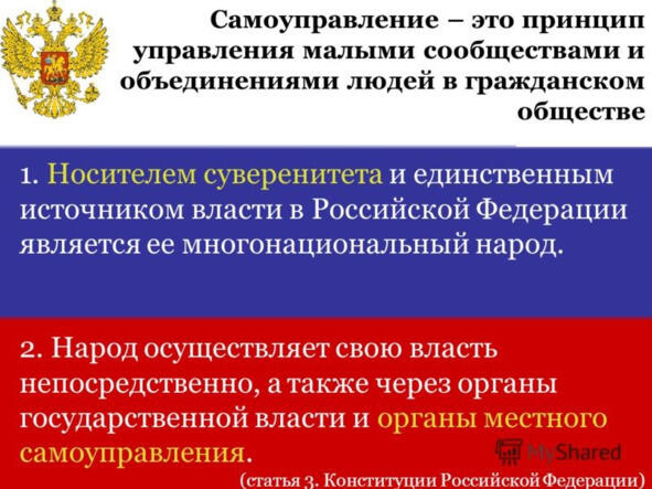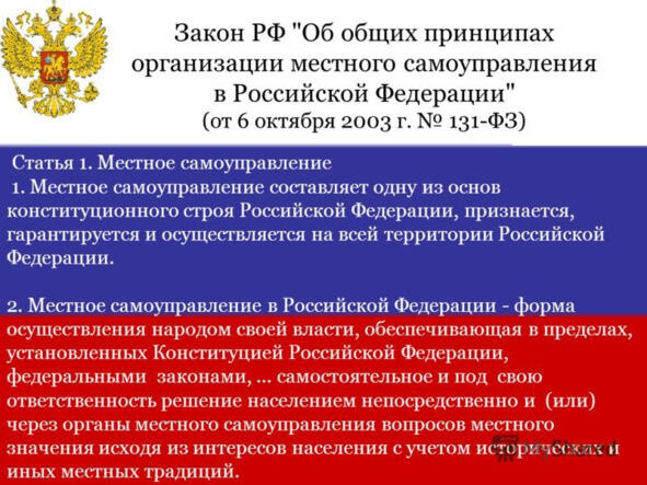 Процесс для России во многом новый, сложный и противоречивый. Как известно, согласно Конституции Российской Федерации 1993 г., местное самоуправление это право граждан участвовать в управлении государством. Именно в управлении. Однако на протяжении многих лет это право дальше деклараций не распространяется. Свыше 100 законов и других нормативно правовых актов по данному вопросу вышло в России с 1990 г. по настоящее время. Но пока сдвигов крайне мало.