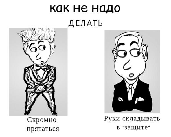 Часть жестов показывают страх, другие агрессию, третье высокомерие и недоверие. А вам это надо? Ниже приведены рисунки позиций выступающих.