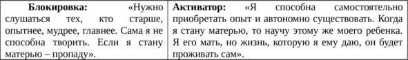 Теперь, поняв, в чем причина нарушения взаимодействия, остается самое трудное изменить поведение и начать действовать по-другому. В Маринином случае, чтобы вырасти, нужно шагнуть за границы, за порог, а потом не мешать выходить за порог и своим детям. Этих «порогов» в нашей жизни несколько: яйцеклетка выходит в свое путешествие из яичника, эмбрион из матки, ребенок из-под опеки, а затем из родительского дома, душа из тела Все это великие переходы, и сложность их как раз в страхе переступить порог и шагнуть в неведомое. К ним мы еще вернемся.