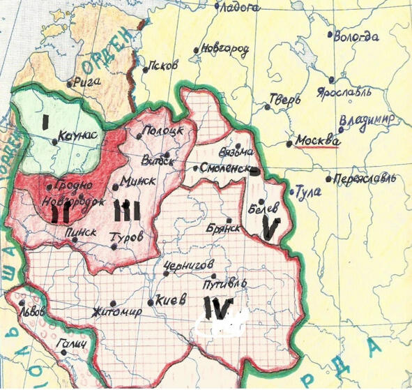 Однако, несколько раньше Москвы, «собирание» русских земель в ежиное государство начало Великое княжество Литовское. В орбиту его влияния попали княжества Юто-Западной Руси.