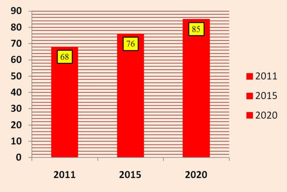Рисунок 3. Целевые показатели динамики роста охвата реабилитационной помощью детей-инвалидов от числа нуждающихся, %