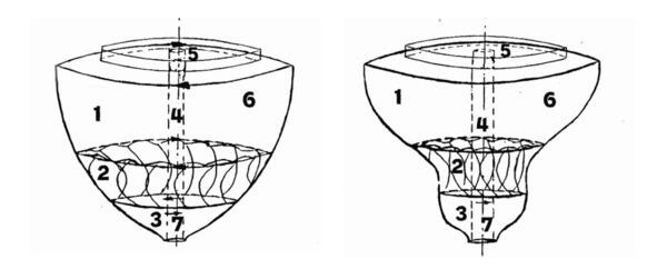 Как следует из его исследования, чакра представляет чашеобразную конструкцию, состоящую из трёх вращающихся частей 1, 2, 3 и неподвижного энергетического ствола 4, заканчивающегося в верхней части энергетическим диском 5. Своей широкой частью соплом 6 чакра относительно тела обращена наружу, а своей узкой частью соплом 7 внутрь.
