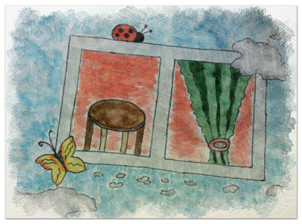 Ай-Ай медленно прогуливался по узким деревенским улочкам, разглядывая дома с резными наличниками. У одного дома он немного задержался, потому что из распахнутых окон на улицу доносилось пение. Кто-то пел звонко и задорно. Ветер колыхнул занавеску и приоткрыл вид в комнату. Ай-Ай увидел, что за большим круглым столом рассажены игрушки куклы, медведи, зайцы и даже была приставлена деревянная лошадка-качалка. Стол сервирован красивой посудой миниатюрные кружечки расставлены по краю стола, а в центре большая хрустальная вазочка с печеньем и конфетами. Вокруг стола ходила девочка и разливала чай, напевая при этом какую то веселую песенку.