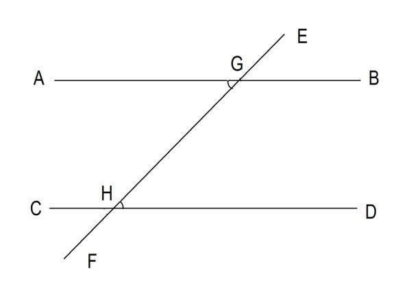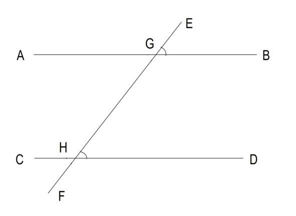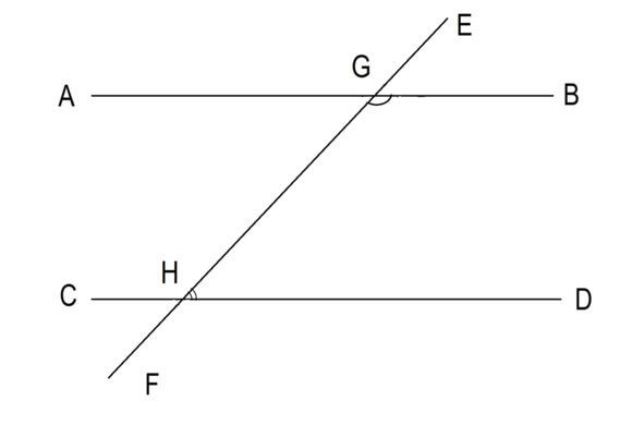 Рисунок 5. Если угол BGH + DHG = 180, то AB || CD