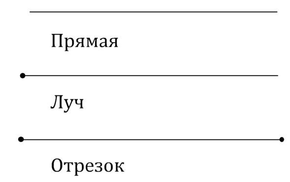 Если прямая линия имеет две конечные точки (начало и конец), она называется отрезком. Смотрите рисунок 1.
