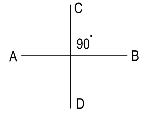 Если две линии пересекаются и образуют угол 90 градусов, они перпендикулярны друг другу.