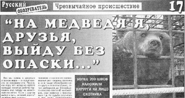«Звериные» истории на страницах газет. На медведя я, друзья, выйду без опаски