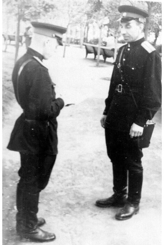 «Обычно папа любил ходить в милицейской форме и только по выходным менял верх на обычную рубашку и то воротник всегда держал застёгнутым. Из брюк предпочитал галифе, видимо потому, что сапоги носил чаще ботинок. Форменный китель, до блеска начищенные яловые сапоги, фуражка, шинель, планшет кожаный и, конечно же, портупея с кобурой, в который вложен настоящий боевой пистолет. Отец любил оружие и мог полдня заниматься им: сядет на кухне, никого не пускает разберёт пистолет и вычищает все детали до блеска. Потом смажет, соберёт револьвер, сложит все железочки в него, положит в кобуру, застегнёт её и с довольным видом ходит по дому.