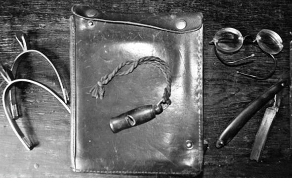 Вещи Георгия Григорьевича: слева его кавалеристские шпоры, планшет из натуральной кожи, костяной милицейский свисток, очки и