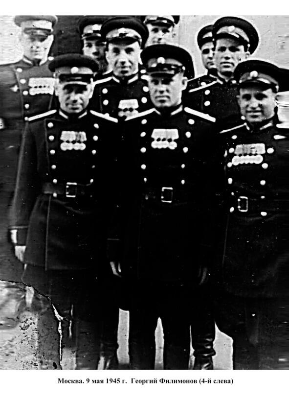 По натуре принципиальный и честный, Георгий искренне служил делу партии и был готов в любой момент прийти на помощь попавшему в беду. Старший лейтенант Филимонов прекрасно плавал и весной 1946 г., недалеко от Бородинского моста, спас оказавшегося на льдине мальчика, доплыв до него в ледяной воде Москвы-реке.