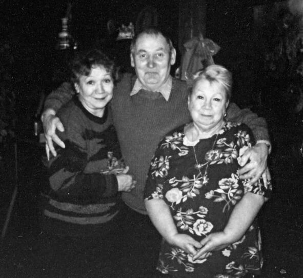 Супруг Л. Г. Алексеевой, Аркадий Павлович, в окружении двух сестер: Людмилы Георгиевны (слева) и Надежды Георгиевны (справа).