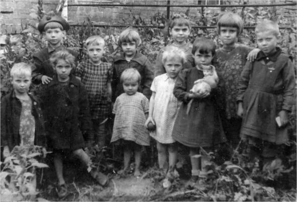 Дети войны. Слева в шапочке Люда Филимонова. 1945 г.
