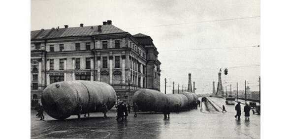 Аэростаты ПВО у Крымского моста. 1941 г.