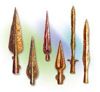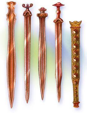 Другим ценным качеством бронзы была более низкая, по сравнению с медью, температура плавления. Это позволяло быстро отлить много одинаковых изделий, например боевых топоров. Из бронзы изготавливались ножи, кинжалы, мечи, наконечники для копий, стрел и дротиков. Медное оружие ушло в прошлое, а бронзовое, напротив, распространилось по всему миру.