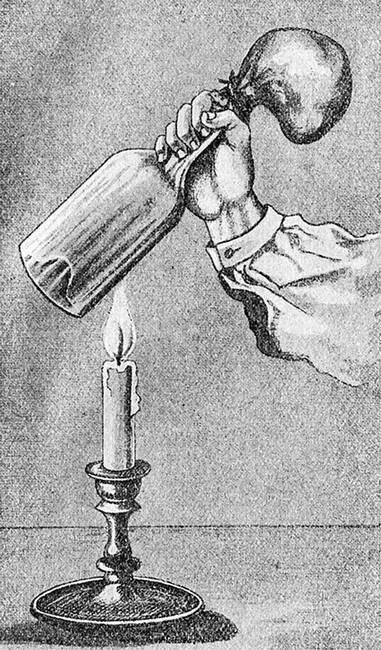 Чтобы понять это, навяжите на горлышко бутылки резиновый шар и нагревайте эту бутылку. Вы сейчас увидите, как резиновый шарик начнет раздуваться. Значит, давление воздуха внутри бутылки увеличилось, так как воздух расширяется, и, расширяясь, растягивает стенки шарика. Воздуха внутри бутылки не стало больше; он только расширился и поэтому занял больше места. Значит, если бутылку нагревать, не закупорив ее, то часть воздуха из нее выйдет. В ней останется воздуха меньше, чем было раньше. Понятно, что и вес оставшегося воздуха будет меньше.