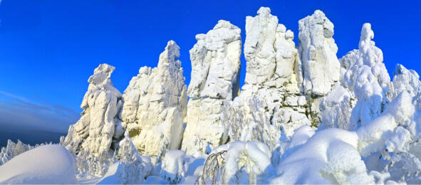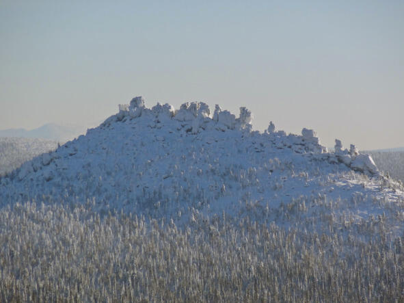Совершенно отдельное удовольствие после зимнего восхождения заключается в опасном и быстром спуске где по лыжне, где по целиковым сугробам крутого склона. Главное тут не пытаться объехать одну и ту же елку двумя ногами с разных сторон Что немаловажно, у всех нас это получилось. Собравшись внизу, у начала лесной лыжни, перевели дух и не спеша заскользили к реке, по пути перебираясь через обтоптанные на подъеме буреломные завалы.