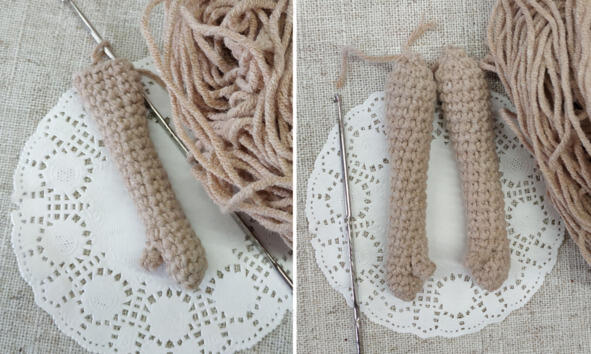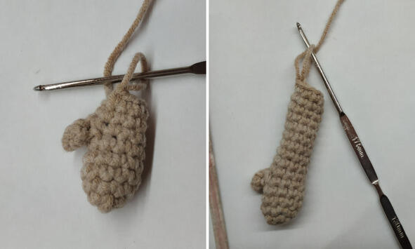 Вторая ручка вяжется аналогично. Но вязание в районе ладошки как бы поворачиваю/складываю, чтобы пальчики были с разных сторон одна ручка стала правой, а другая левой.