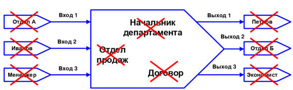 получать входы от отделов, сотрудников, физических лиц и прочих сущностей, кроме процессов;