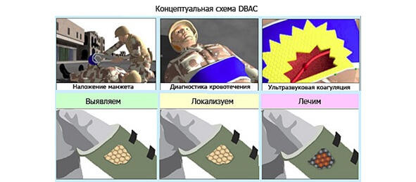 Американские ученые разработали технологию DBAC (Deep Bleeder Acoustic Coagulation), позволяющую быстро свертывать кровь путем нагрева до температуры свертывания (от 70° C до 95° C) под воздействием ультразвука.
