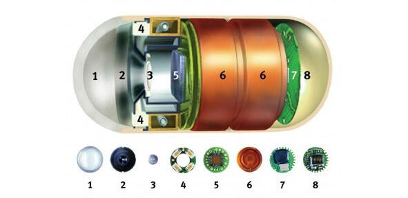 Выпускается капсула (рис. 6), позволяющая исследовать тонкий кишечник. Такую капсулу проглатывают и она сама посредством перистальтики передвигается по желудочно-кишечному тракту и передает фотографии тонкого кишечника на датчики.