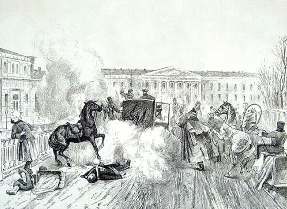 Царь, слегка оглушенный мощным взрывом, вышел из кареты. Именно в этот момент, воспользовавшись потрясением окружающих, второй бомбист, Игнатий Гриневицкий, завершил начатое дело, бросив в незащищенного царя еще одну бомбу.1