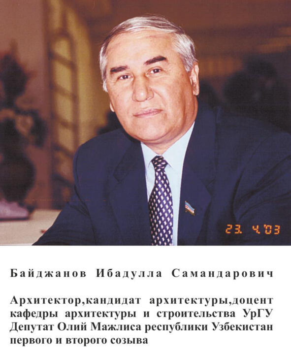 М.Б.Сетмаматов., Урганч Давлат университетининг «Қурилиш ва архитектура» кафедраси мудири доцент, архитектура фанлари номзоди.