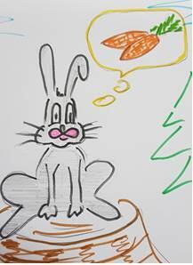 2. Что он любит морковку и тарабанить лапкой по пенькам! Вот какой весёлый Зайчик и сколько много информации! Значит можно его расспросить ещё о том, «где он берёт морковку?», «по каким пенькам любит барабанить?». О чём бы ты его ещё спросил?