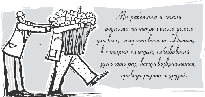 В этих нескольких предложениях содержится смысл деятельности предприятия. Они должны стать задачей и целью для каждого сотрудника. Каждый из них должен задуматься стал бы он толкать гостя или не здороваться с ним у себя дома. Каждый должен понять, что хозяйка не может нарушить свой фирменный рецепт, когда готовит угощение для близких людей.