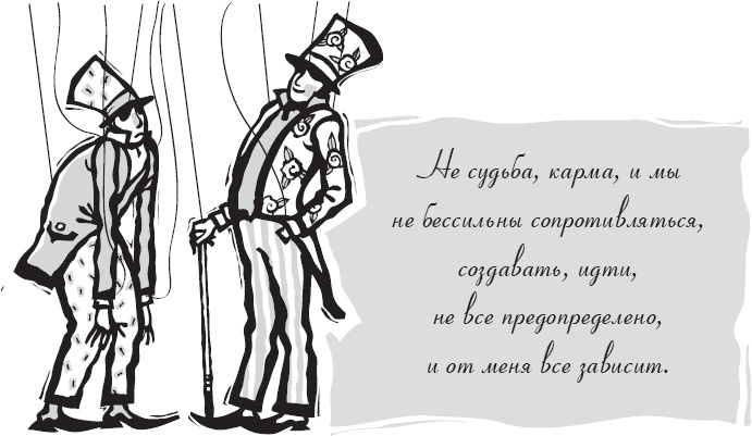 Два человека могут жить в одних условиях, учиться в одном классе, и все у них будет похожим, даже одинаковым, но один, так ничего и не добившись, тихо или шумно спивается, не увидев даже соседнего города, а у другого весь мир «в кармане». Получается, что не обстоятельства, точно, делают нас. Не судьба-карма, и мы не бессильны сопротивляться, создавать, идти, не все предопределено, и от меня все зависит. Я не овощ, не полено, не щепка в реке, не плыву по течению и не жду, чем все закончится. То, чего я добился и добиваюсь в жизни, не кто-то написал заранее, а я не иду проторенным курсом.