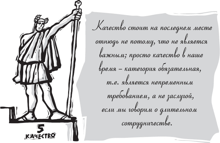 Качество стоит на последнем месте не потому, что не является важным, скорее, качество в наше время категория обязательная, т. е. является обязанностью, а не заслугой, если мы говорим о длительном сотрудничестве.