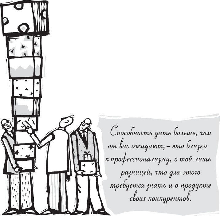 Способность дать больше, чем от Вас ожидают, это рядом с профессионализмом, с той лишь разницей, что для этого требуется знать и о продукции своих конкурентов.