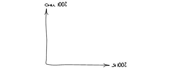 А еще есть вариант сотрудничества, математически не совсем очевидный, но все же по 100 процентов каждому. Все получают то, что хотели, в полном объеме (в отличие от компромисса).