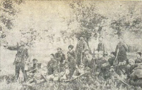 Обучение военному делу в партизанском отряде, организованном железнодорожниками на ст. Попасная (1918)