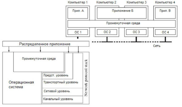 Соответственно, такая распределенная система обычно называется системой промежуточного уровня (middleware).