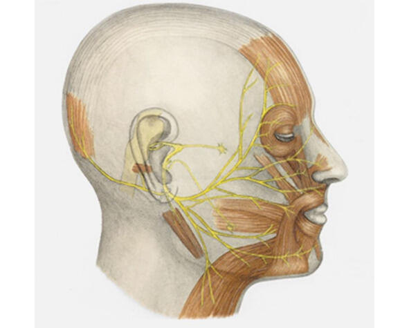 При выходе из foramen stylomastoideum лицевой нерв вступает в толщу околоушной железы и разделяется на свои конечные ветви. На пути в одноименном канале височной кости n. facialis дает следующие ветви: