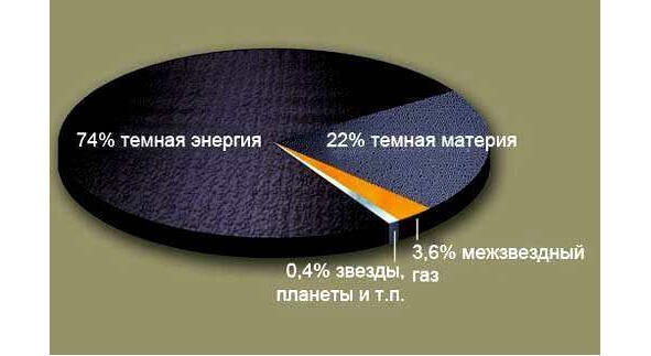 По данным современной науки ВСЕЛЕННАЯ СОСТОИТ в основном из темной энергии и темной материи; природа обеих неизвестна. Обычное вещество, из которого сформированы звезды, планеты и межзвездный газ (в т.ч. и мы с вами с нашими машинами и вещами), составляет лишь малую долю. Звезды и планеты составляют 0,4% от всего состава Вселенной.