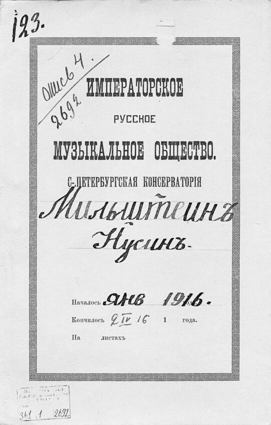 Сомнения рассеялись, когда мы сделали запрос в Дирекцию Санкт-Петербургской консерватории (ведь Н. Мильштейн был студентом класса профессора Л. Ауэра). Ответ архива консерватории гласил: «Студент Н. Мильштейн 1902 года рождения действительно учился».