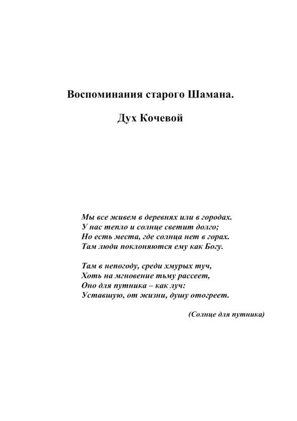 Дорогой читатель! Книга, которую вы держите в руках, явилась продолжением романов «Путь Волка» и «Молодое поколение». Она о людях, об их мечтах и устремлениях. О силе, что заставляет человека двигаться вперед. Она о горце из древней притчи и о его пути; о молодых ребятах, которые пошли в свой нелегкий жизненный поход. Она о дальнем поселке, который затерялся на берегу холодного Сибирского моря, о судьбах людей того времени. Книга о пастухе, живущем в Великой степи, о его семье и ее истории. Она о деревенском мастере-печнике, о его последнем кочевом пути. Эта книга о Духе, который объединяет всех ее героев о Духе кочевом.
