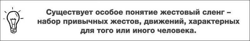 Существует особое понятие жестовый сленг набор привычных жестов, движений, характерных для того или иного человека.