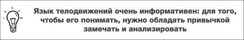 Язык телодвижений очень информативен: для того, чтобы его понимать, нужно обладать привычкой замечать и анализировать, уметь абстрагироваться от того, что человек говорит, и обращать внимание на то, как он говорит.