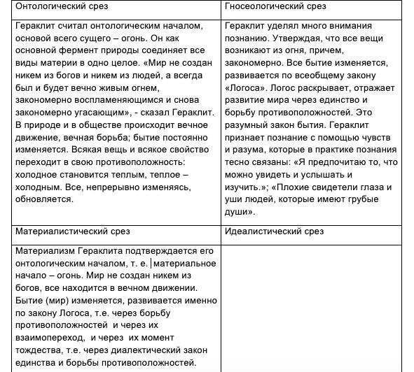 Гераклит первый яркий диалектический материалист. Он диалектически разрабатывал процесс познания, тем самым утверждая фундаментальную материалистическую идею.